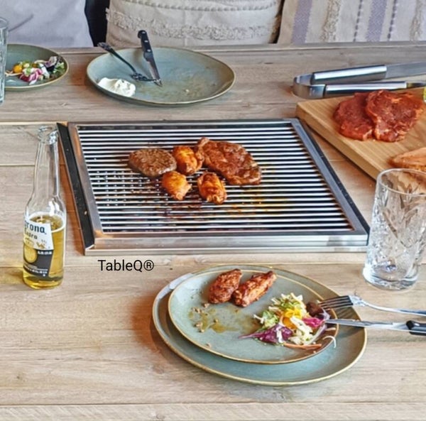 TQ4 sQuare barbecuetafel op houtskool combi woktafel