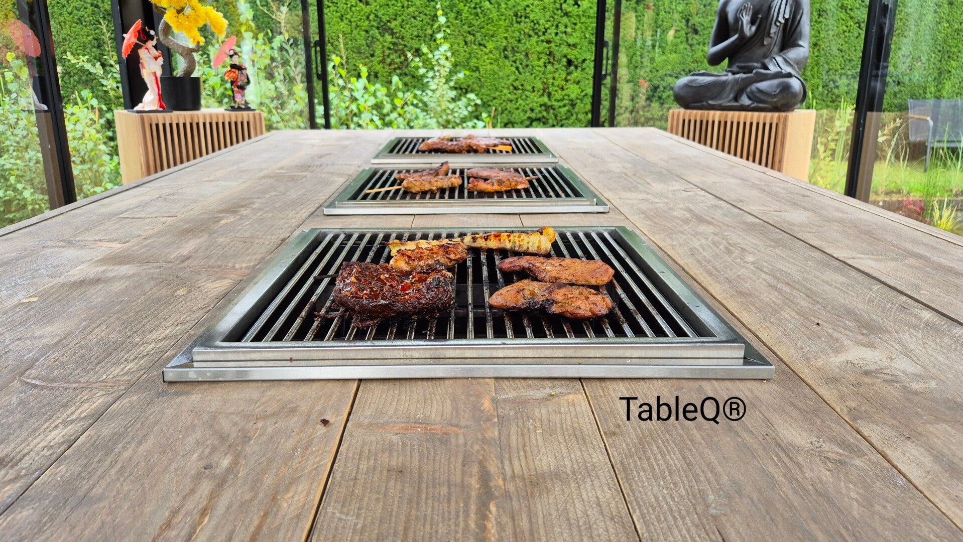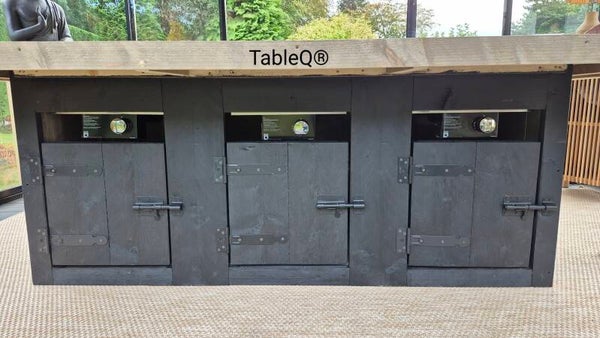 Grote barbecue tafel met drie gasbarbecues voor uitgebreid barbecueën / gourmetten aan tafel met grotere gezelschappen. Dankzij de gas barbecue met temeratuurregeling, grill je snel en gecontroleerd. Met een RVS bowl voeg je eenvoudig een dranktafel, vuurtafel of serveerschaal toe. Dit is de beste combinatie van koken en gezellig samenzijn.