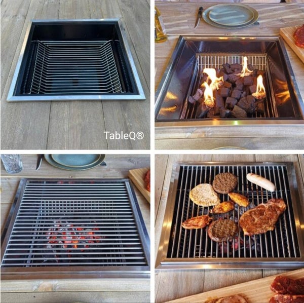 Ontwerp jouw perfecte BBQ-tafel door houtskool bbq, gasbbq, wokbrander en RVS bowl te combineren. Zo maak je een multifunctionele barbecuetafel / gourmettafel die ook als dranktafel of vuurtafel gebruikt kan worden. Ideaal voor wie een flexibele buiten eettafel met barbecue zoekt.
